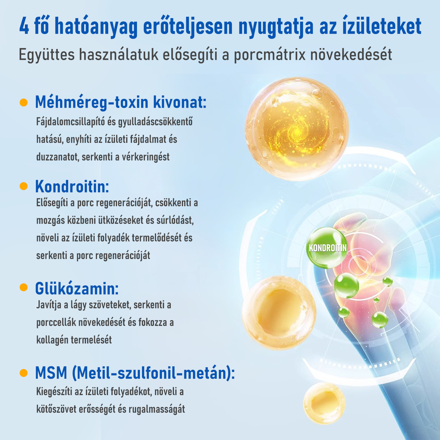 - Segíti az ízületek javítását és regenerációját