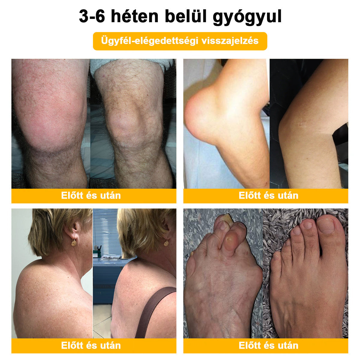 "Idén úgy döntöttem, hogy kezelést kapok a lábaimra. Az akkori fájdalmam nagyon intenzív volt, még a legkisebb távolság is félelemmel töltött el. A térdeim egyre inkább görbültek, gyakran elestem, és néha még az ínszalagok is elszakadtak. Az életkor hatásai és a kopás hamarabb jelentkeztek, mint ahogy vártam, és az ízületi gyulladás majdnem teljesen összeroppantott. Mivel Budapesten nőttem fel, jól ismertem a nagy kórházak hírnevét, ezért írtam egy levelet a Budai Egészségközpont sebészeti igazgatójának, ahol leírtam az állapotomat. Ők ezt a terméket ajánlották. Amikor megkaptam, be kell vallanom, hogy nagyon aggódtam. Az első gondolatom az volt: „Túl súlyos a helyzetem ahhoz, hogy ez a termék segíthessen?” Visszatekintve rájöttem, hogy akkor már készen álltam arra, hogy feladjam, és kompromisszumos életmódot válasszak. Azonban miután felkentem a térdemre, hamarosan éreztem a fájdalom enyhülését. Egy hónap múlva a lábaim már nem voltak olyan görbék, és tudtam végezni néhány napi tevékenységet. Három hónap múlva végre megszabadultam a fájdalmaktól. Olyan páratlan kényelmet és szabadságot adott, hogy most ismét egészséges életet élhetek, görbült lábak nélkül! Nagyon szerencsésnek érzem magam, hogy felfedeztem ezt a terméket, és örökre hálás leszek érte!"- Eszter Katalin,29,Budapest