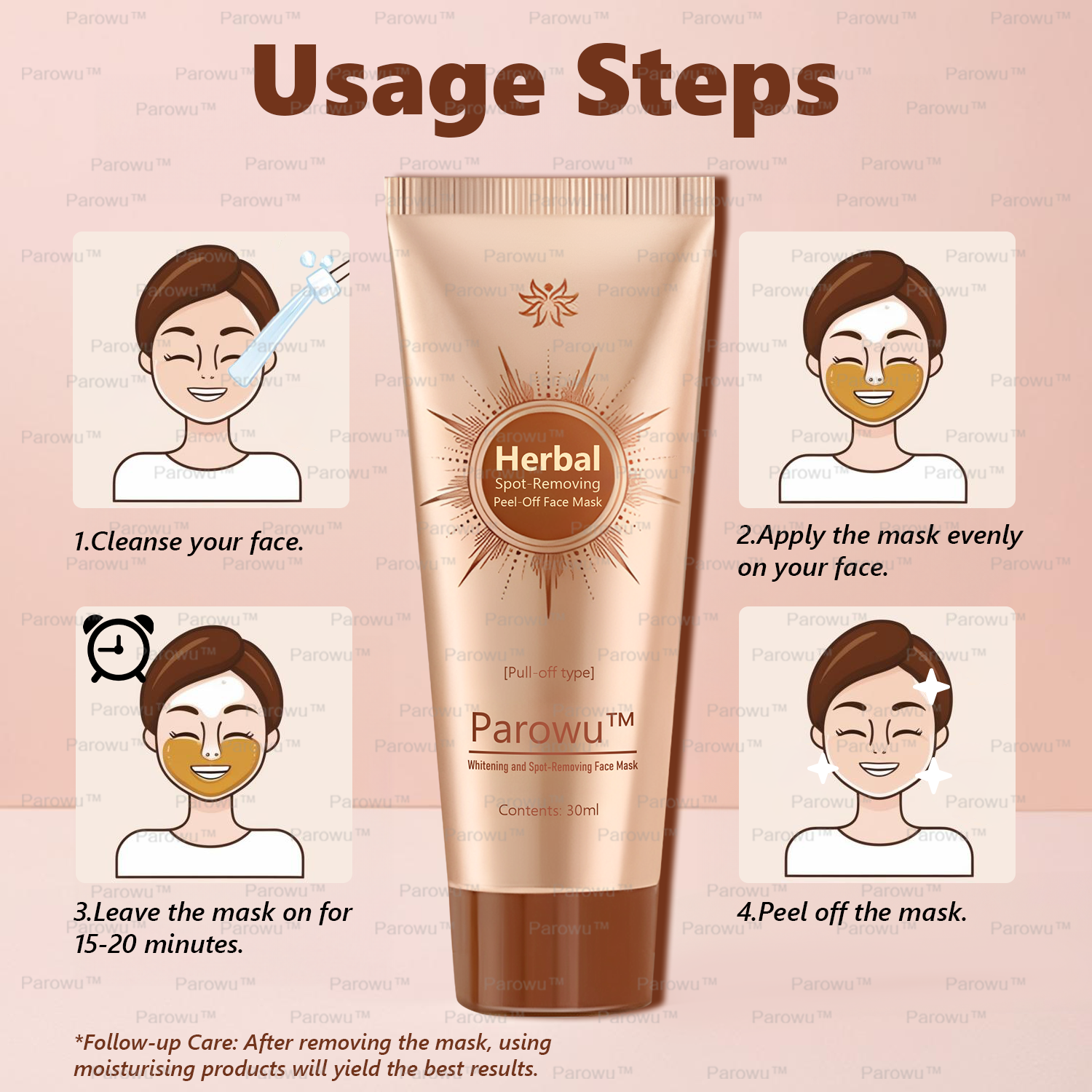 "As a skincare researcher, I have always been dedicated to harnessing the dual power of advanced scientific technologies and natural plant extracts to provide deep, gentle cleansing and powerful antioxidant effects for the skin. Through rigorous research and testing conducted with my laboratory team, as well as clinical trials involving over 2,000 testers, we discovered that the careful selection and precise formulation of natural ingredients can promote deep skin repair. This led me to develop an innovative treatment solution—Parowu™ Whitening and Spot-Removing Face Mask, offering a safe, effective, and lightweight skincare option."