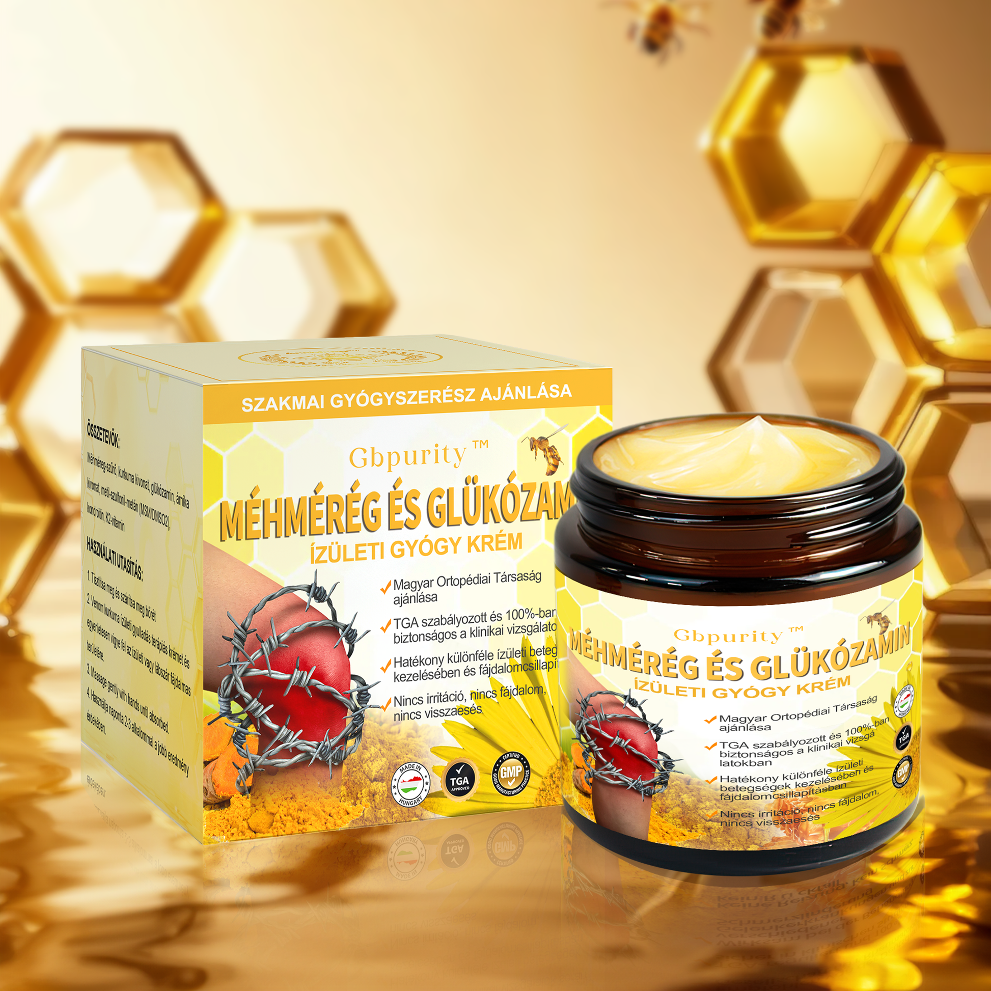 Gbpurity™ Méhmérég És Glükózamin Ízületi Gyógy Krém híres hatékonyságáról ismert, amely széles spektrumú ortopédiai problémák kezelésére szolgál.